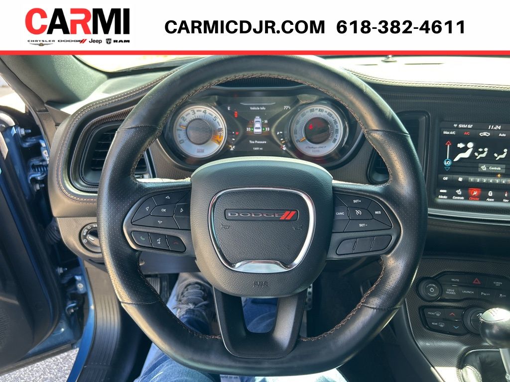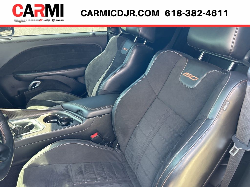 1-Yr SiriusXM Guardian Trial, 230MM Rear Axle, 4-Wheel Disc Brakes, 4G LTE Wi-Fi Hot Spot, 5-Year SiriusXM Traffic Service, 5-Year SiriusXM Travel Link Service, 506 Watt Amplifier, 50th Anniversary Berber Floor Mats, 50th Anniversary Edition, 50th Anniversary Grille Badge, 50th Anniversary Instrument Cluster, 50th Anniversary IP Badge, 50th Anniversary Limited Edition (DISC), 50th Anniversary Numbered IP Badge, 50th Anniversary Spoiler Badge, 50th Illuminated Lit Air Catcher, 50th Logo Nappa/Alcantara Seats, 6 Speakers, 8.4" Touchscreen Display, 9 Amplified Speakers w/Subwoofer, ABS brakes, Adaptive Damping Suspension, Air Conditioning, Alloy wheels, Alpine Audio Group w/Subwoofer, AM/FM radio: SiriusXM, Anti-whiplash front head restraints, Apple CarPlay, Apple CarPlay/Android Auto, Auto-dimming Rear-View mirror, Automatic temperature control, Black Fuel Filler Door, Black Grille w/Bezel, Blind Spot & Cross Path Detection, Body Color Shaker Hood Scoop, Brake assist, Brembo 6-Pot Fixed Front Caliper Brakes, Bumpers: body-color, Compass, Copper Weave Carbon Fiber Accents, Delay-off headlights, Driver Convenience Group, Driver door bin, Driver vanity mirror, Dual front impact airbags, Dual front side impact airbags, Electronic Stability Control, Emergency communication system: SiriusXM Guardian, For Details, Visit DriveUconnect.com, Four wheel independent suspension, Front anti-roll bar, Front Bucket Seats, Front Center Armrest, Front dual zone A/C, Front fog lights, Front reading lights, Fully automatic headlights, Garage door transmitter, Gloss Black I/P Cluster Trim Rings, Gold School R/T Wide Grille Badge, Google Android Auto, GPS Antenna Input, GPS Navigation, Gunmetal Gray Brake Calipers, HD Radio, Heated door mirrors, Heated front seats, Heated steering wheel, High-Intensity Discharge Headlamps, Illuminated entry, Integrated Center Stack Radio, Integrated Voice Command w/Bluetooth, Leather Flat-Bottom Steering Wheel, Leather Shift Knob, Low tire pressure warning, Media Hub (2 USB, AUX), Monochrome Bee Fender Badge, MOPAR Black Hood Pin Kit, MOPAR Shaker Hood, MOPAR Shaker Intake, Outside temperature display, Overhead airbag, Overhead console, Panic alarm, ParkView Rear Back-Up Camera, Passenger door bin, Passenger vanity mirror, Performance Shift Indicator, Power door mirrors, Power driver seat, Power Multi-Function Foldaway Mirrors, Power steering, Power Tilt/Telescope Steering Column, Power windows, Premium-Stitched Dash Panel, Quick Order Package 23U R/T Scat Pack 50th Ann WB, Radio data system, Radio: Uconnect 4C Nav w/8.4" Display, Radio: Uconnect 4C w/8.4" Display, Rear anti-roll bar, Rear reading lights, Rear seat center armrest, Rear window defroster, Remote keyless entry, Rhombi 2-Pc Wheel Center Cap, Satin Black 50th Anniversary Hood, Satin Black Dodge Tail Lamp Badge, Satin Black Hood Paint, Satin Wrap Roof/Decklid, Scat Pack Logo Houndstooth Seat, Security system, Sepia Accent Stitching, SiriusXM Satellite Radio, SiriusXM Traffic Plus, SiriusXM Travel Link, Speed control, Speed-sensing steering, Split folding rear seat, Spoiler, Sport steering wheel, SRT Track Experience, Steering wheel mounted audio controls, Surround Sound, Tachometer, Telescoping steering wheel, Tilt steering wheel, Traction control, Trip computer, Underhood Shaker Decal, USB Host Flip, Variably intermittent wipers, Ventilated Front Seats, Wheels: 20" x 11" 50th Gold School, Wheels: 20" x 9" Lo Gloss Granite Crystal, Widebody Competition Suspension, Widebody Fender Flares.