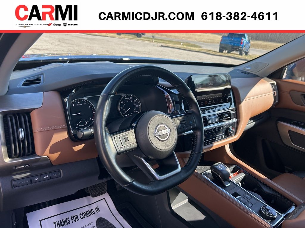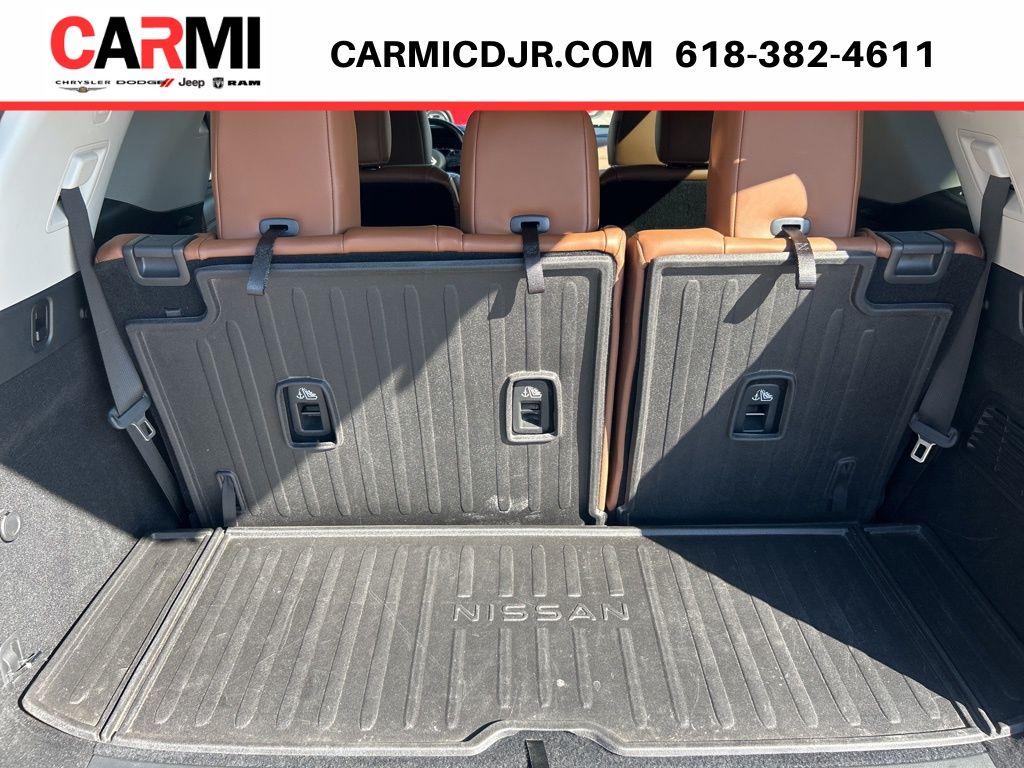 Leather, Heated & Cooled Seats, 20" Wheels, 3rd row seats: bench, Auto High-beam Headlights, Auto tilt-away steering wheel, Auto-dimming Rear-View mirror, Bose Premium Audio System, Climate Controlled Front Bucket Seats, Front dual zone A/C, Front fog lights, Fully automatic headlights, Garage door transmitter: HomeLink, Heads-Up Display, Heated door mirrors, Heated rear seats, Heated steering wheel, Leather steering wheel, Memory seat, Navigation system: Nissan Connect Navigation, Power door mirrors, Power driver seat, Power Liftgate, Power passenger seat, Rain sensing wipers, Rear air conditioning, Reclining 3rd row seat, Semi-Aniline Leather Seating Surfaces, Speed control, Split folding rear seat, Tilt steering wheel, Turn signal indicator mirrors, Ventilated front seats, Wheels: 20" Alloy w/Unique Finish, 13 Speakers, 4-Wheel Disc Brakes, ABS brakes, Air Conditioning, Alloy wheels, AM/FM radio: SiriusXM, Automatic temperature control, Axle Ratio: TBD, Black Splash Guards (Set of 4), Bodyside moldings, Brake assist, Bumpers: body-color, Captain's Chairs Carpeted Floor Mats (Set of 4), Cargo Area Protector, Cargo Net, Cargo Package, Delay-off headlights, Driver door bin, Driver vanity mirror, Dual front impact airbags, Dual front side impact airbags, Electronic Stability Control, Emergency communication system: NissanConnect Services, Exterior Parking Camera Rear, First Aid Kit, Four wheel independent suspension, Front anti-roll bar, Front Bucket Seats, Front Center Armrest, Front reading lights, Heated front seats, Illuminated entry, Knee airbag, Low tire pressure warning, NissanConnect w/Navigation & Services, Occupant sensing airbag, Outside temperature display, Overhead airbag, Overhead console, Passenger door bin, Passenger vanity mirror, Power moonroof, Power steering, Power windows, Radio data system, Radio: AM/FM Audio System, Rear anti-roll bar, Rear reading lights, Rear side impact airbag, Rear window defroster, Rear window wiper, Remote keyless entry, Security system, Speed-sensing steering, Speed-Sensitive Wipers, Spoiler, Steering wheel memory, Steering wheel mounted audio controls, Tachometer, Telescoping steering wheel, TFT Meter Delete, Traction control, Trip computer, Variably intermittent wipers, PANORAMIC MOONROOF!!, CLEAN CARFAX!!, 3rd row seats: bench, Auto High-beam Headlights, Auto tilt-away steering wheel, Auto-dimming Rear-View mirror, Bose Premium Audio System, Climate Controlled Front Bucket Seats, Front dual zone A/C, Front fog lights, Fully automatic headlights, Garage door transmitter: HomeLink, Heads-Up Display, Heated door mirrors, Heated rear seats, Heated steering wheel, Leather steering wheel, Memory seat, Navigation system: NissanConnect Navigation, Power door mirrors, Power driver seat, Power Liftgate, Power passenger seat, Rain sensing wipers, Rear air conditioning, Reclining 3rd row seat, Semi-Aniline Leather Seating Surfaces, Speed control, Split folding rear seat, Tilt steering wheel, Turn signal indicator mirrors, Ventilated front seats, Wheels: 20" Alloy w/Unique Finish.
